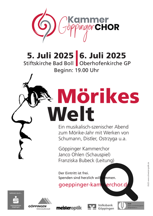 Am Samstag, den 5. Juli um 19 Uhr lädt der Göppinger Kammerchor zu einem besonderen Konzertabend in die Stiftskirche Bad Boll ein – eine Hommage an Eduard Mörike in Wort, Musik und Szene. Unter dem Titel „Mörikes Welt“ präsentiert das Ensemble unter der Leitung von Franziska Bubeck einen musikalisch-szenischen Abend, der ganz dem Leben und Wirken Eduard Mörikes gewidmet ist – jenem Dichter, den Gottfried Keller einst liebevoll als „Sohn des Horaz und einer feinen Schwäbin“ bezeichnete.